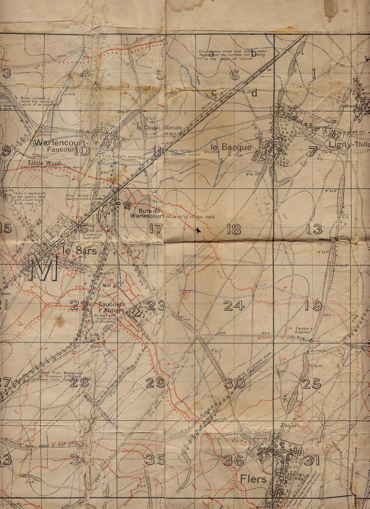 The smears, so the story went, was our grandfather’s blood or perhaps that of his brave, unfortunate batman, Bain, the X marking the place where they were shot by the Germans during an attack on the Butte de Warlencourt in the Battle of the Somme in October 1916.
